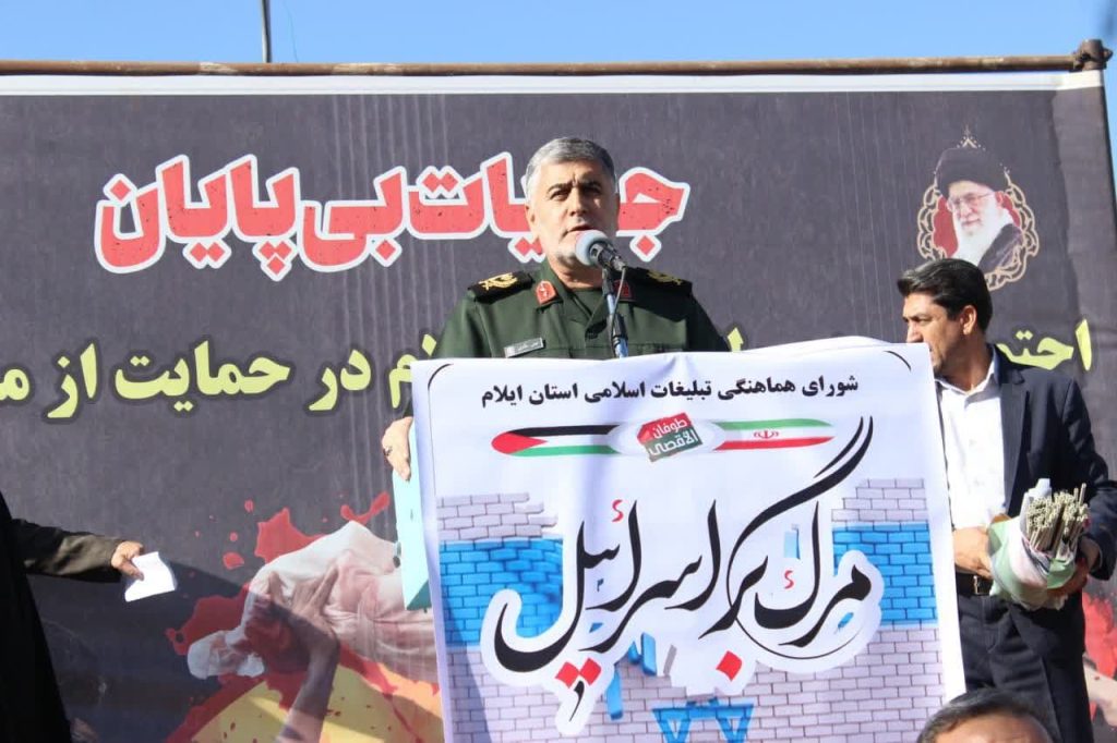 اقشار مختلف مردم ایلام همزمان با سایر نقاط ایران و برخی کشورهای دنیا در حمایت از مردم غزه و محکومیت جنایات رژیم غاصب اسرائیل به خیابان ها آمدند و علیه رژیم صهیونیستی و همپیمانانش شعار سر دادند.