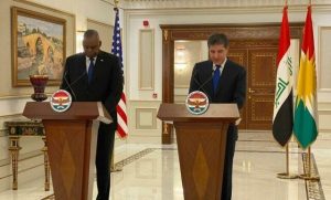 رئیس اقلیم کردستان عراق در دیدار با وزیر دفاع آمریکا روابط مشترک میان اربیل و واشنگتن و نیز مقابله با تروریسم و داعش را بررسی کرد. رئیس اقلیم کردستان عراق در دیدار با وزیر دفاع آمریکا روابط مشترک میان اربیل و واشنگتن و نیز مقابله با تروریسم و داعش را بررسی کرد. به گزارش شفق نیوز، «نیچروان بارزانی» رئیس اقلیم کردستان عراق در کنفرانس مطبوعاتی مشترک با لوید آستین، وزیر دفاع آمریکا گفت: از ایالات متحده بابت حمایتش از اقلیم کردستان تشکر میکنیم.نیچروان بارزانی ضمن تشکر از آنچه «حمایت آمریکا از عراق و اقلیم در مقابله با داعش» خواند، گفت، حل اختلافات و مسائل پیچیده بین اربیل و بغداد به تحقق ثبات امنیتی، سیاسی و اقتصادی در کشور کمک میکند.او ادامه داد: «درباره اهمیت حمایت و پشتیبانی از نیروهای پیشمرگ و نیروهای عراقی در مقابله با داعش صحبت کردیم و بر اهمیت حمایت آمریکا و کشورهای دوست از طرح اصلاح و تشکیل وزارت پیشمرگ تاکید کردیم.»بارزانی افزود: به آنها اطمینان دادیم ما بر اجرای طرح اصلاح نیروهای پیشمرگ و برچیدن موانع مقابل آن مصر هستیم و به تلاشها برای حل مشکلات داخلی اقلیم کردستان ادامه خواهیم داد.وی خاطرنشان کرد: بر حل اختلافات بغداد و اربیل توافق کردیم زیرا که ثبات امنیتی، سیاسی و اقتصادی و آرامش را در عراق به همراه خواهد داشت.رئیس اقلیم کردستان عراق همچنین تصریح کرد: بر اهمیت حمایت از دولت عراق و تلاش مشترک در منطقه به منظور حفظ ثبات توافق کردیم. کردستان همیشه عاملی برای آرامش و ثبات باقی خواهد ماند.او خطاب به آستین گفت: منافع مشترک و در هم تنیده شدن این منافع ما را با آمریکا گره میزند و با هم میتوانیم امنیت و ثبات عراق و منافع آن را حفظ کنیم.آستین نیز گفت: با هم در شرایط دشوار اقدام کرده و به شکل مشترک با داعش مقابله کردهایم. آمریکا و دولت کردستان عراق و اقلیم برای بازپس گیری حاکمیت عراق تلاش کردند.او ادعا کرد: به جنگ علیه داعش ادامه میدهیم. نیروهای پیشمرگ و نیروهای عراق و آمریکا با هم علیه داعش جنگیدند و ما در عراق باقی خواهیم ماند و به دعوت دولت عراق برای مقابله با داعش اینجا هستیم.آستین به ادامه حمایت واشنگتن از نیروهای پیشمرگ و تمام صفوف نیروهای عراق اشاره و از یادداشت تفاهم امضا شده بین وزارت پیشمرگ و وزارت دفاع آمریکا درباره حمایت این کشور از نیروهای پیشمرگ حمایت کرد.وزیر دفاع آمریکا در تکمیل اظهاراتش گفت: از همکاری بین پیشمرگ و نیروهای عراق و تشکیل لشکری مشترک بین آنها حمایت میکنیم و به تلاشها برای دستیابی اقلیم و بغداد به توافقی در این زمینه ادامه میدهیم.او اظهار کرد: تهدیدات داعش همچنان به قوت خود باقی است و خطری بر جان ساکنان عراق و منطقه است. احتمال میرود داعش بار دیگر در عراق آفتابی شود، اربیل و بغداد باید در جهت منافع ملت این کشور با هم هماهنگی مشترک داشته باشند.او از نیروهای سیاسی کرد خواست که اختلافاتشان را کنار بگذارند. لوید آستین روز سه شنبه طی سفری رسمی و از پیش اعلام نشده وارد عراق شد.