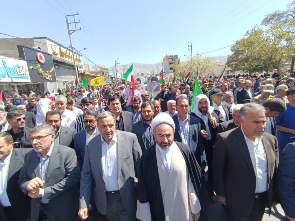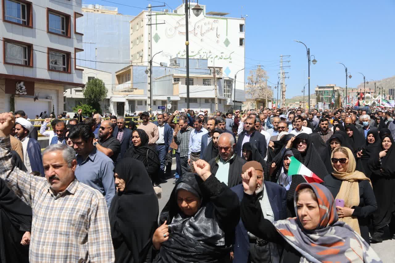 مردم ولایی و همیشه در صحنه ایلام امروز در آخرین جمعه ماه مبارک رمضان و همزمان با روز جهانی قدس، با شعار مرگ بر آمریکا و مرگ بر اسرائیل، انزجار خود را از جنایت های رژیم غاصب صهیونیستی و حامیان آن به نمایش گذاشتند.